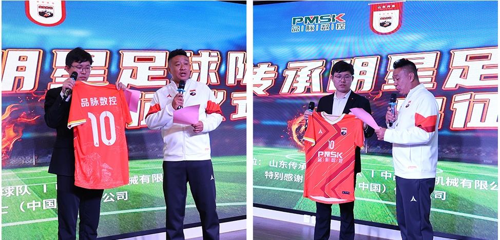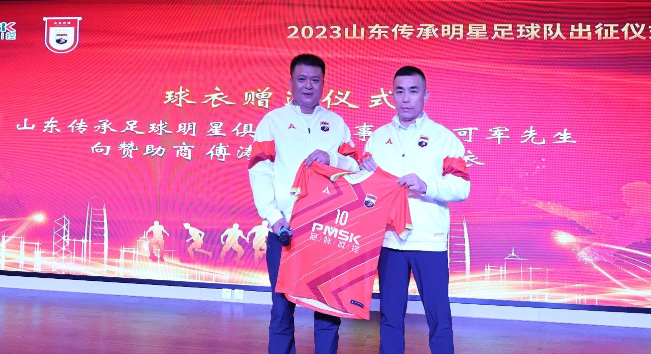 山東傳承足球明星俱樂(lè)部董事長(zhǎng)察可軍向贊助商傅濤董事長(zhǎng)贈(zèng)送球衣