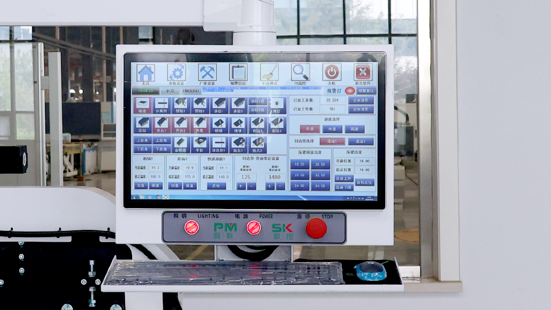 伺服升降壓梁結(jié)構(gòu),精準(zhǔn)控制,實(shí)現(xiàn)不同厚度板材封邊快速調(diào)節(jié)。
